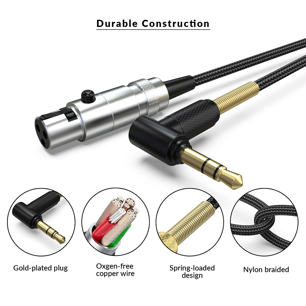 Upgrade or replace the cable for your AKG K712 Pro studio headphones with this high-quality Mini XLR to 3.5mm replacement cord. Built with a durable nylon braided sleeve and L-shaped 3.5mm plug to prevent strain and accidental disconnects. Ideal for studio monitoring, gaming, podcast editing, and everyday listening.