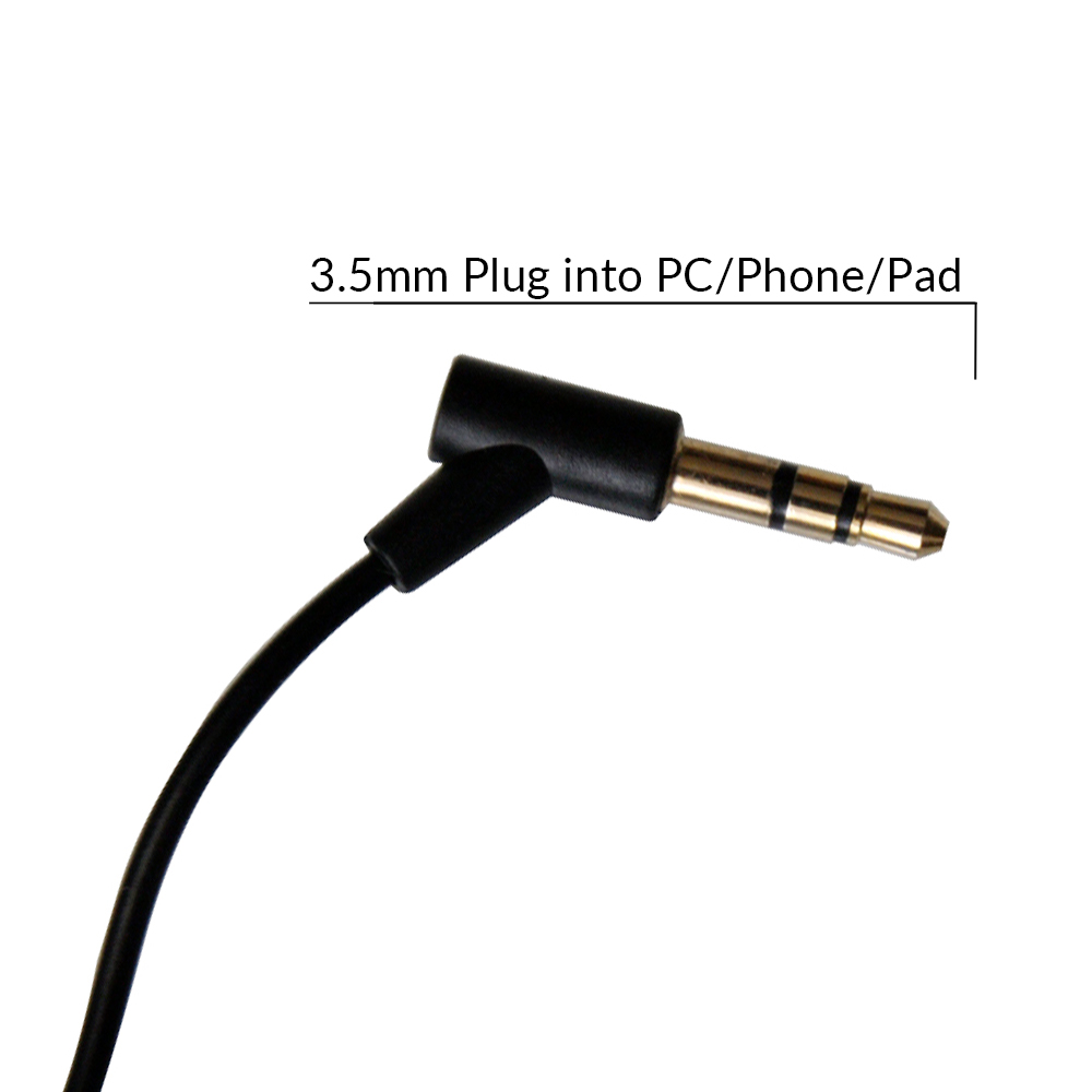 - Angled 1/8″ (3.5 mm) connector fits laptops, iPod®, DVD and other portable players