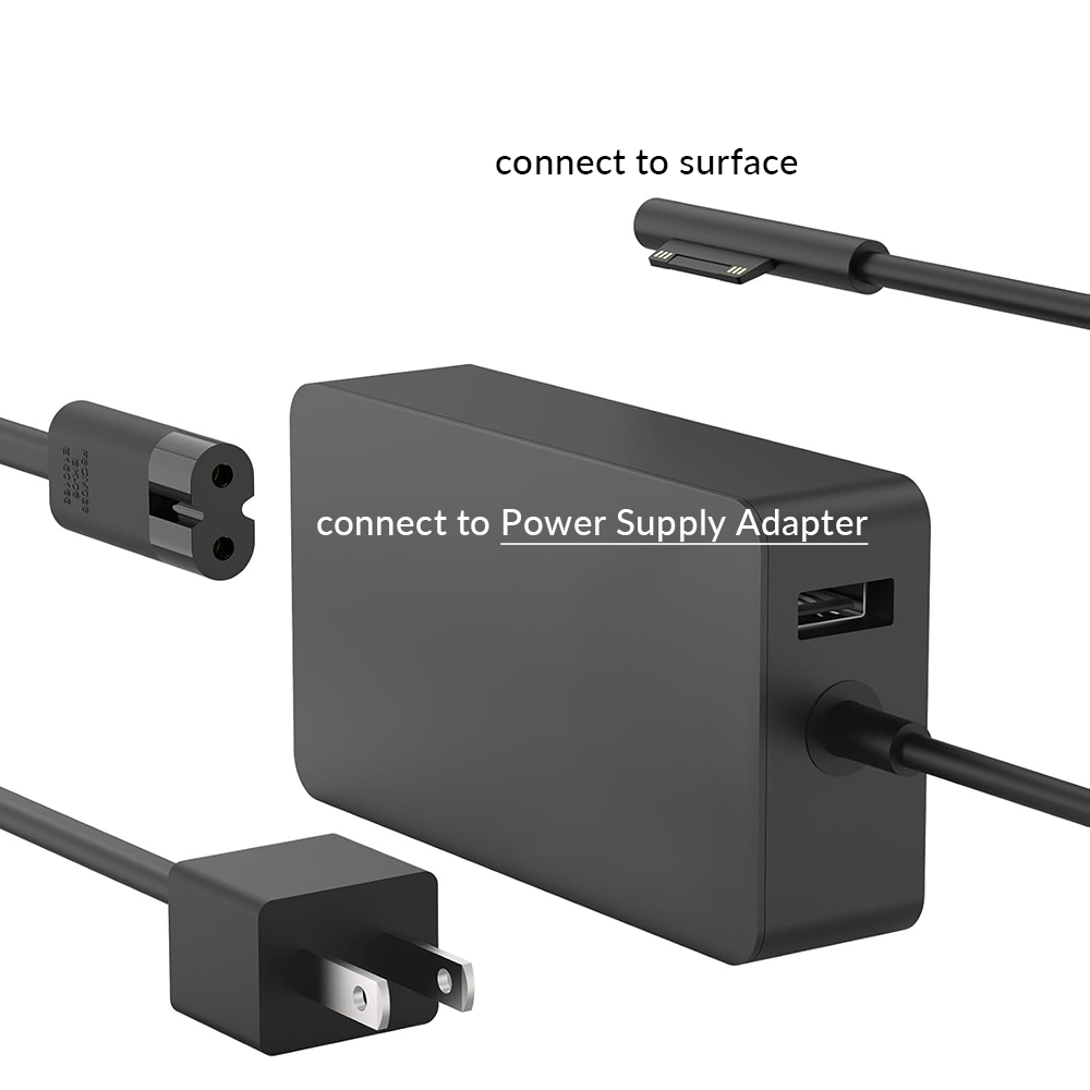 - Works with power supplies for Microsoft Surface Book, Surface Pro 5/4/3/2, Surface 2, and Surface Dock